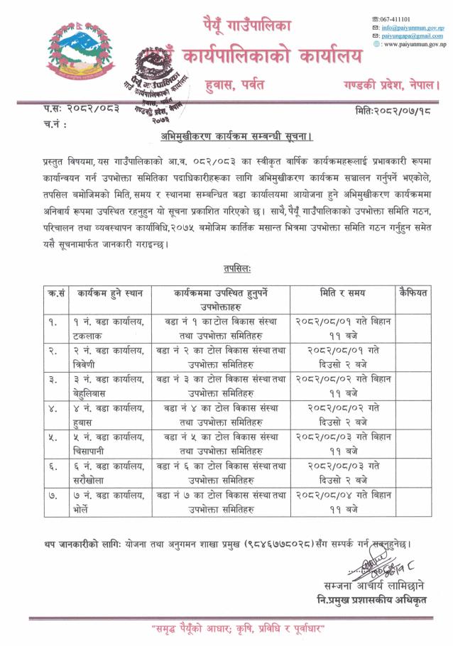 अभिमुखीकरण कार्यक्रम सम्बन्धी सूचना।
