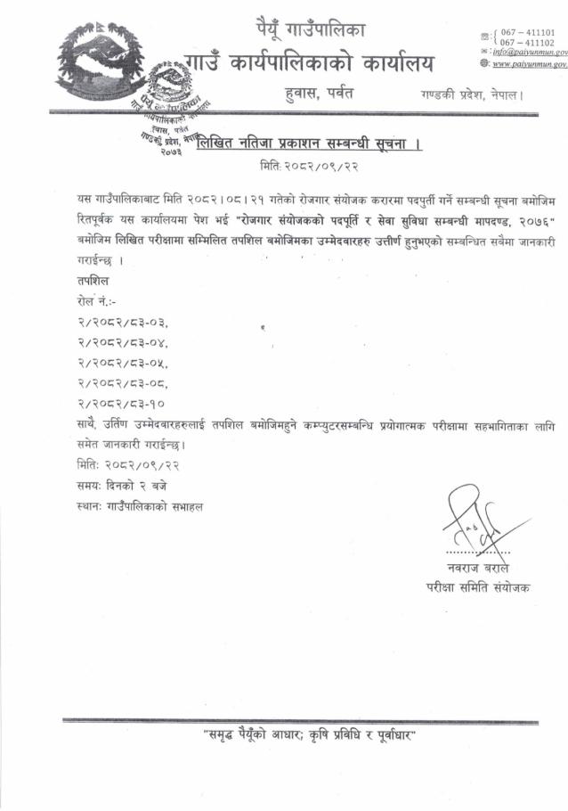 लिखित नतिजा प्रकाशन सम्बन्धी सूचना।