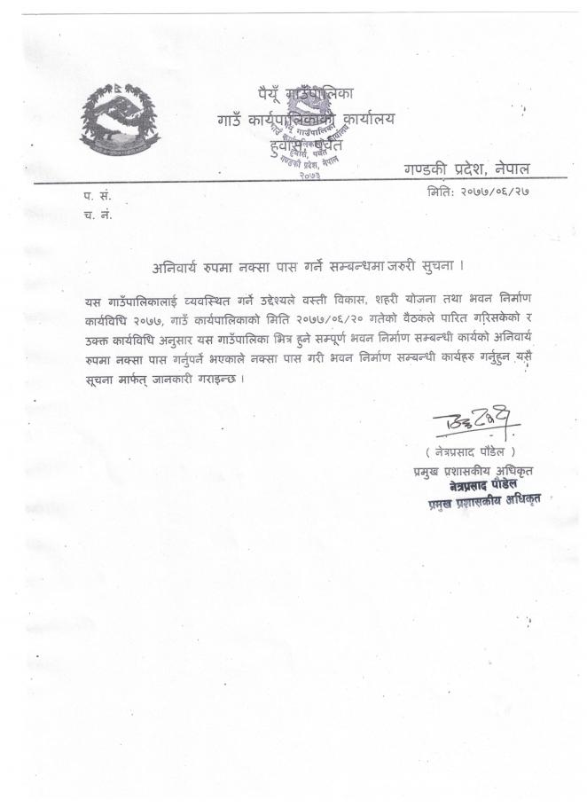 अनिवार्य रुपमा नक्सा पास गर्ने सम्बन्धी सूचना !