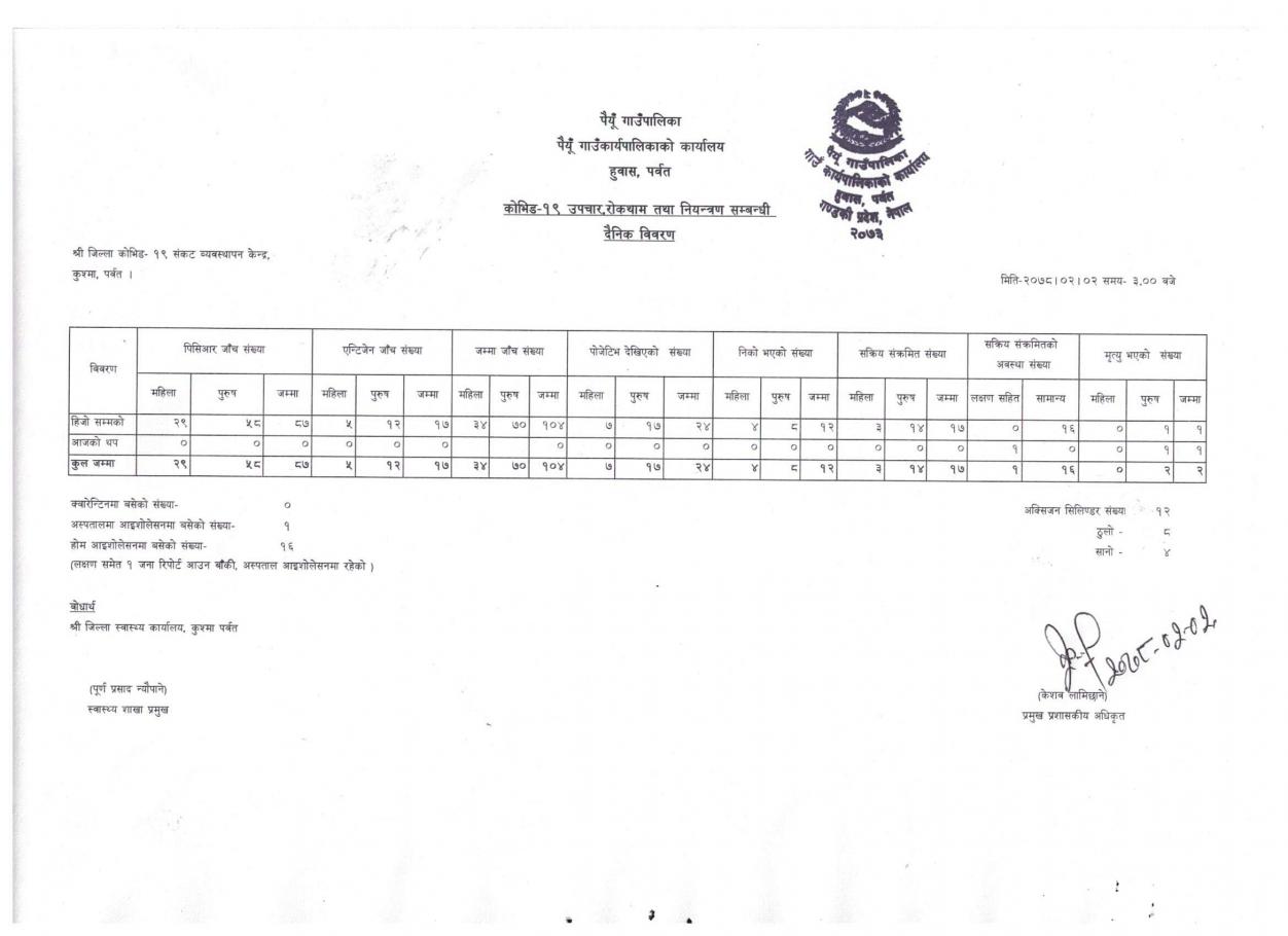 » कोभिड-१९ उपचार,रोकथाम तथा नियन्त्रण सम्बन्धि दैनिक विवरण( २०७८-०२-०२)