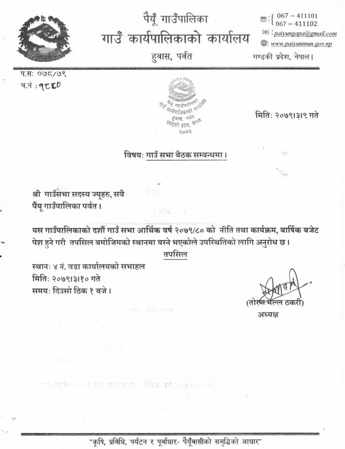 info@paiyunmun.gov.np कार्यालय कोडः८०१०४४२
