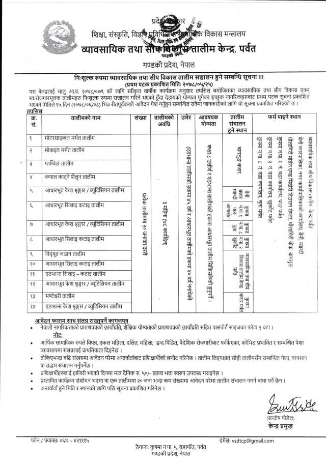 » निःशुल्क रुपमा व्यावसायिक तथा सिप विकास तालिम सञ्चालन हुने सम्बन्धि सूचना !!