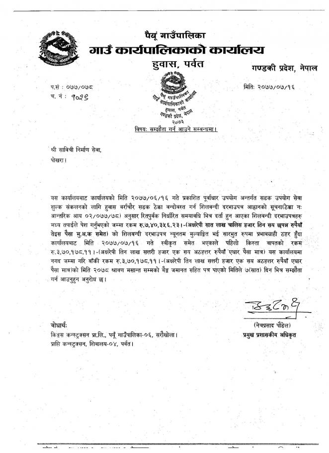 » सम्झौता गर्न आउने सम्बन्धमा (पुर्वाधार उपयोग अन्तर्गत सडक उपयोग सेवा शुल्क संकलन)