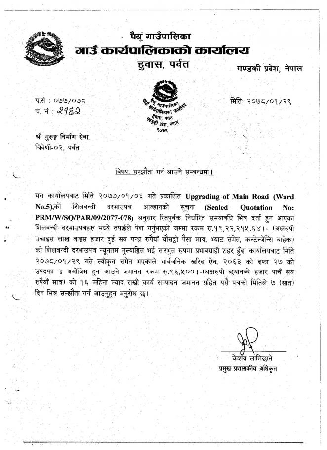 सम्झौता गर्न आउने सम्बन्धमा! [Upgrading of Main Road (Ward No.5)]