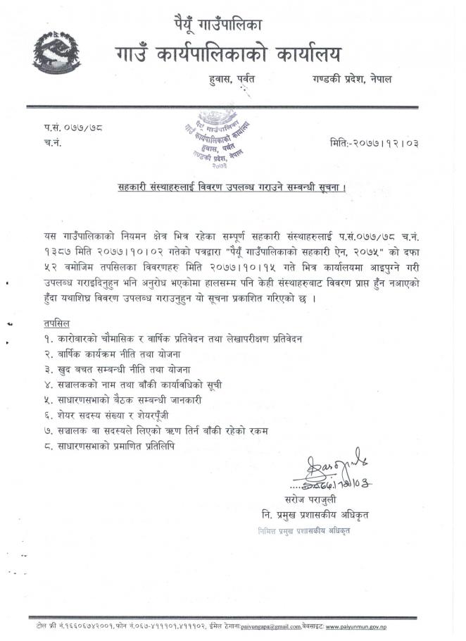 info@paiyunmun.gov.np कार्यालय कोडः८०१०४४२