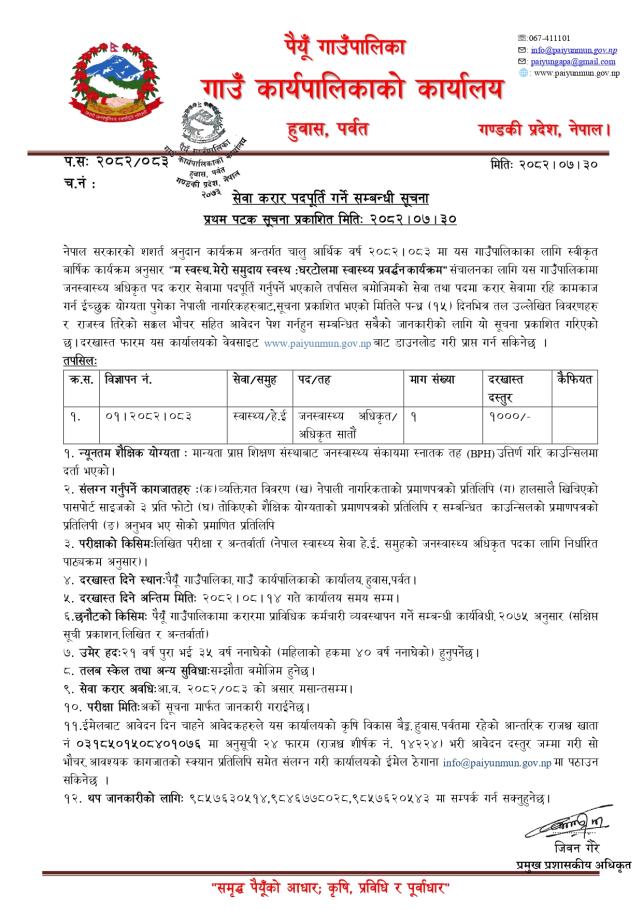 सेवा करार पदपूर्ति गर्ने सम्बन्धी सूचना ।